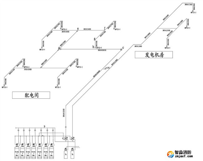 2、氣體滅火系統(tǒng)采用全淹沒保護(hù)形式,用組合分配系統(tǒng)對各防護(hù)區(qū)進(jìn)行保護(hù)。